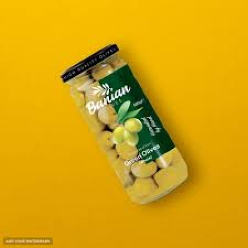Green sliced canned olives in different weight